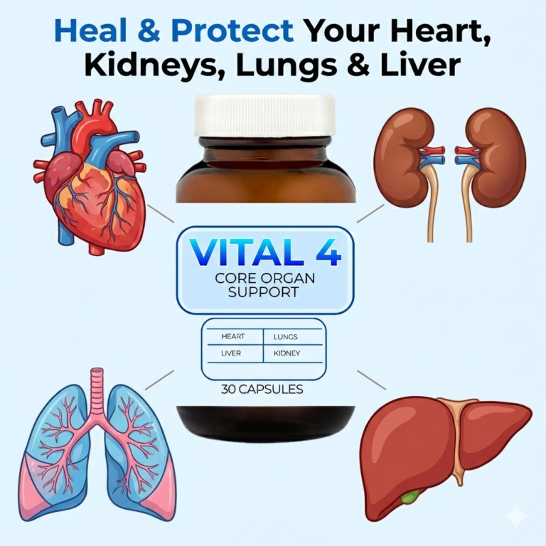 VITAL 4 is a breakthrough natural formula that does what no other supplement can—it protects & supports your heart, liver, kidneys, and lungs using 8 of nature’s most powerful organ-healing botanicals.